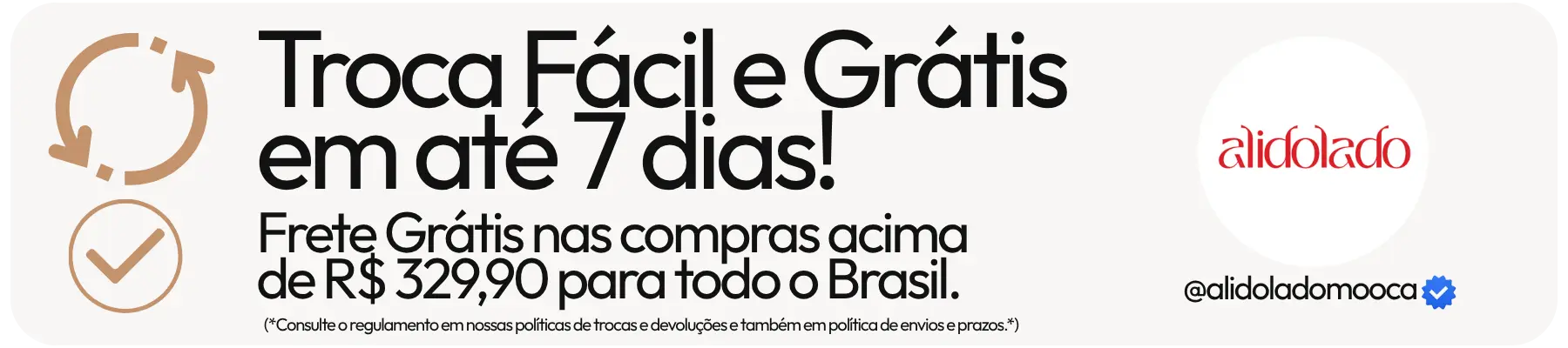 Compre no site e troque na loja se desejar! (Válido somente para produtos vendidos e entregues pela Alidolado)